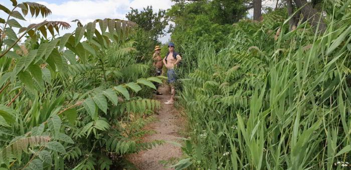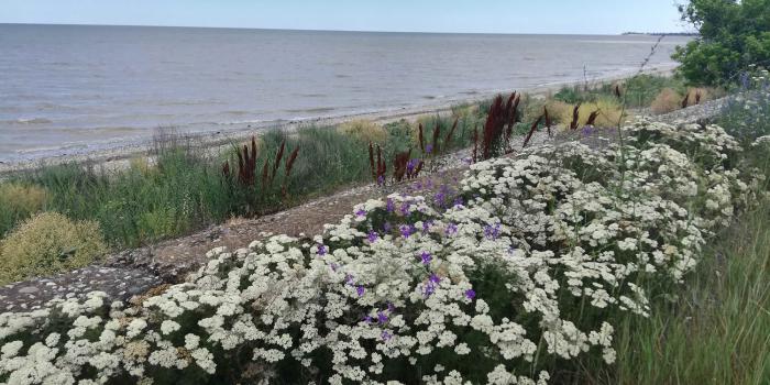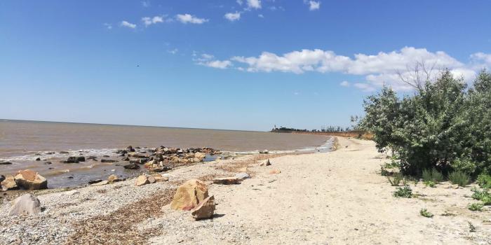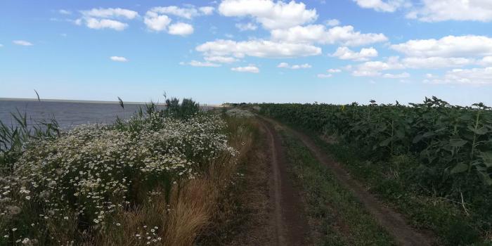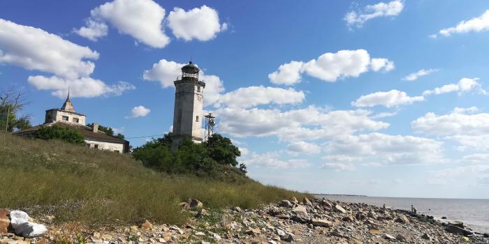 Маяк виден отовсюду, местный символ. Хотя сложно представить, зачем он тут был нужен. И какой корабль мог случайно налететь здесь на прибрежные камни, если до берега нужно километры плыть по мелководью… Тем не менее, задачу мы себе поставили, 6 км по берегу пешком – это не проблема, пошли впятером. Дима сказал, что подождет нас в номере под кондиционером… Берег азовского побережья – места удивительные. Разнотравье, поля, заброшенные базы отдыха… Часа три шли, периодически макаясь в азовские волны.