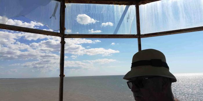 Вблизи зрелище было удручающее. Дом смотрителя и сам маяк были явно в аварийном состоянии. Внутри башни грязь, мельтешащие ласточки и… новые пластиковые окна. Мы, конечно, залезли на самый верх, полюбовались на окрестности, прочитали все цензурные и особенно нецензурные надписи. Согласились с общей их мыслью.