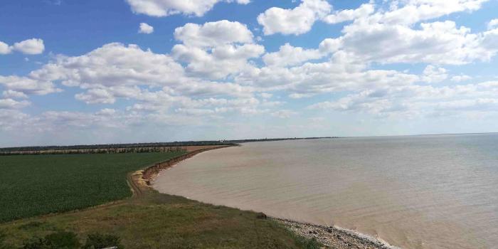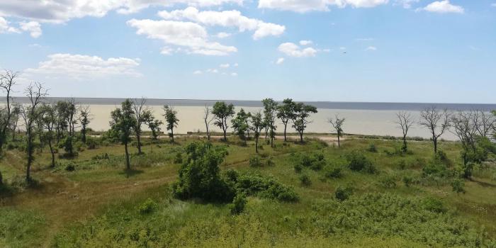 Это вот здесь. Населенных пунктов тут нет. Ехали машинами до хутора Садки, потом прямо со двора деревенского дома стартовали на косу