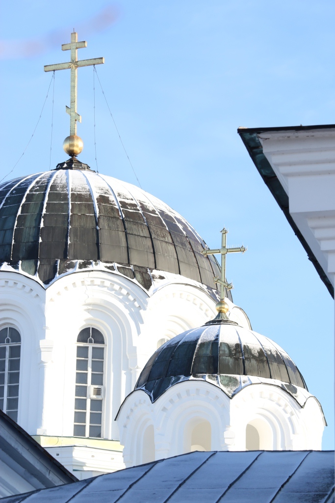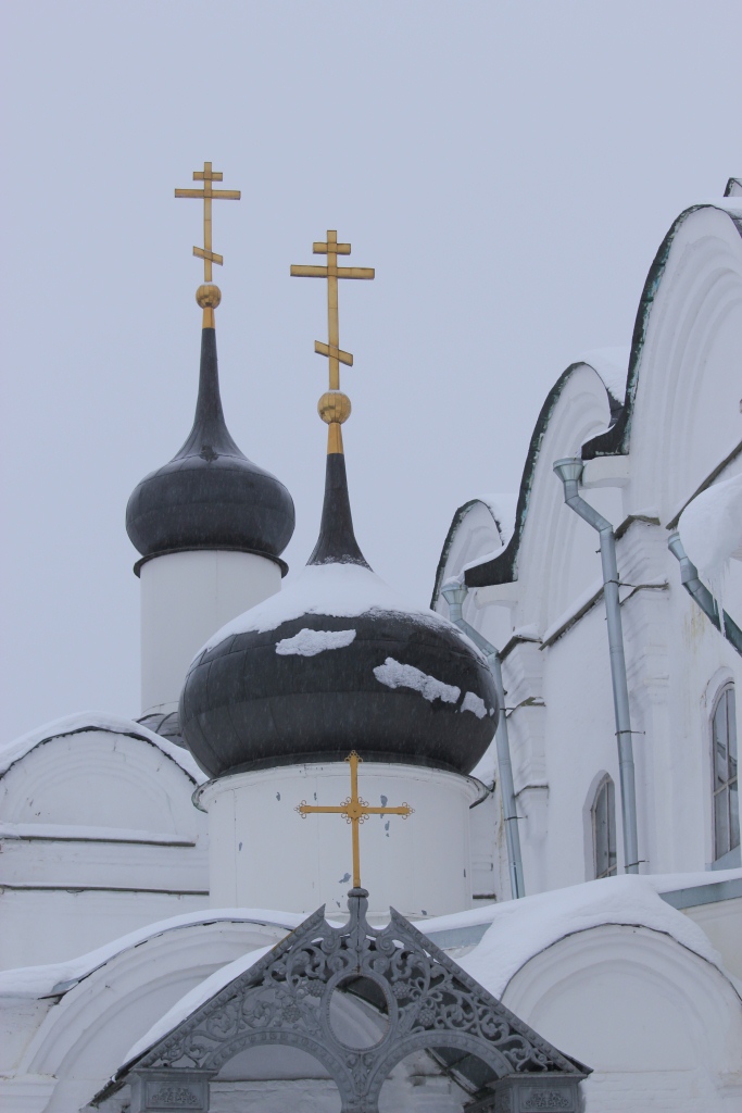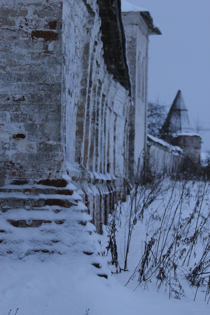 Посмотрели на чудаков-рыбаков, ловящих рыбу непосредственно со льдин. Детей мы не стали будить, они сладко сопели на втором ряду, пока мы осматривали Монастырь. Впечатления: скромно, нету пафосных новоделов, сверкающих расчудес, есть Дух времени, печать Столетий, скорбь, тишина, мысли, которые становятся громче, тепло от свечей, икон.