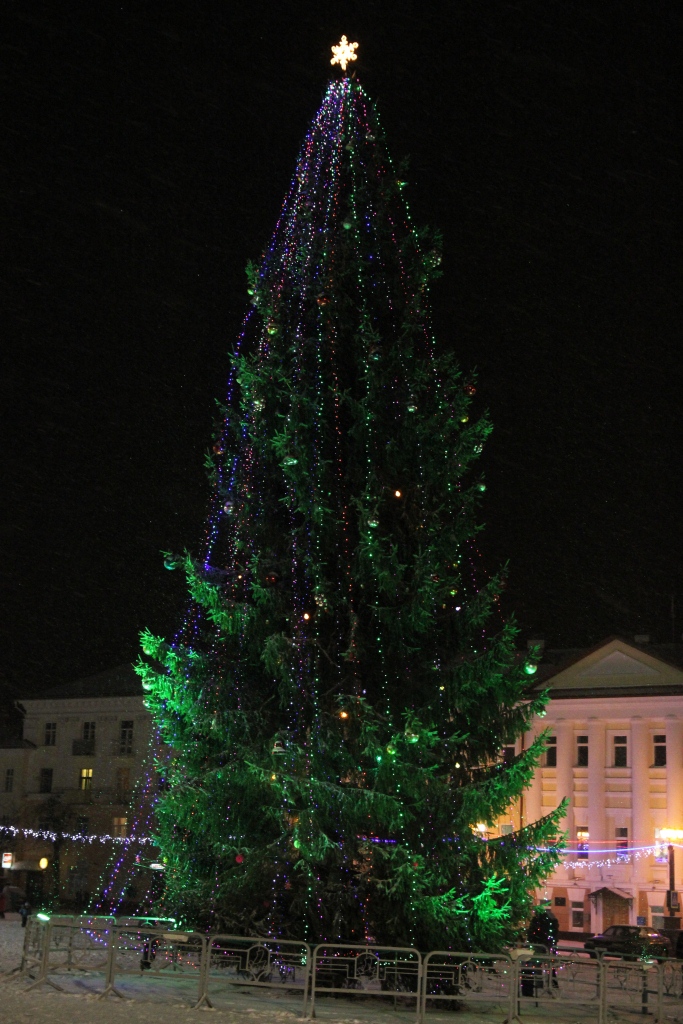 Огромная елка. Настоящая, живая, ну уже не очень…, но необычно как-то).
