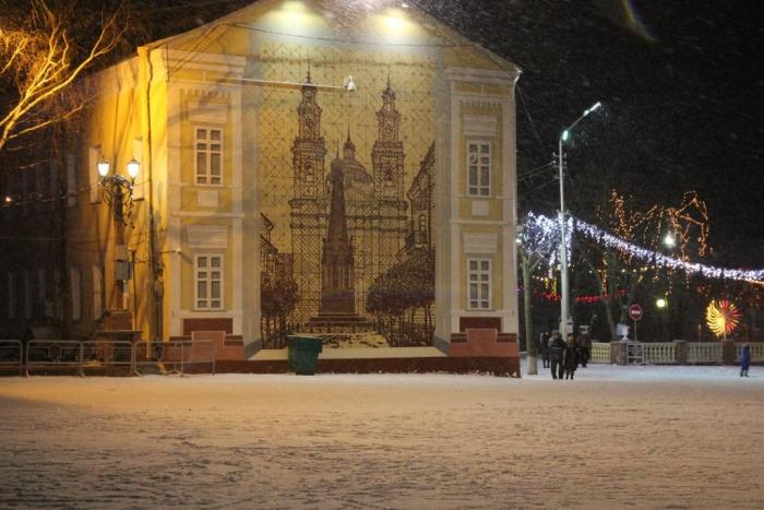 дети снова запросились на горки. Их энергия просто не иссякаема. На площади соседствуют памятники воинам Великой Отечественной и 1812 года.Здание с красивой росписью на торцевой стене.