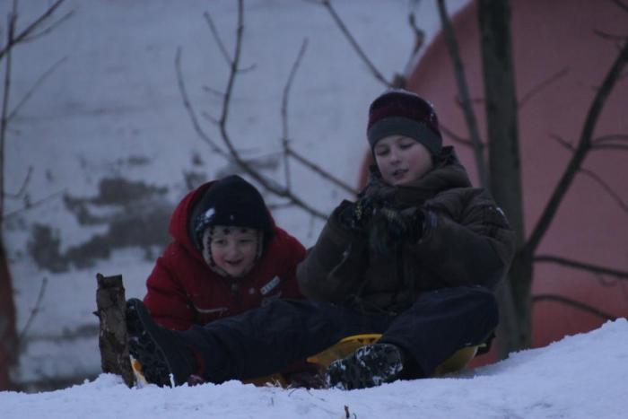 Благо напротив кафе оказалась городская площадь с елкой и горкой, на которой ребята обкатывали ледянки, пока я готовила чай и кофе из заботливо на «всякий такой случай» прихваченного домашнего запаса.