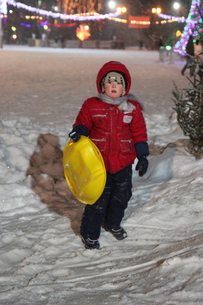 Выйдя из храма, мы было направились погулять, но дети заголосили, хотим горок. Рядом с Собором была раскатаная «живая » горка с которой, с нашего разрешения, ребята вдоволь накатались, накувыркались.