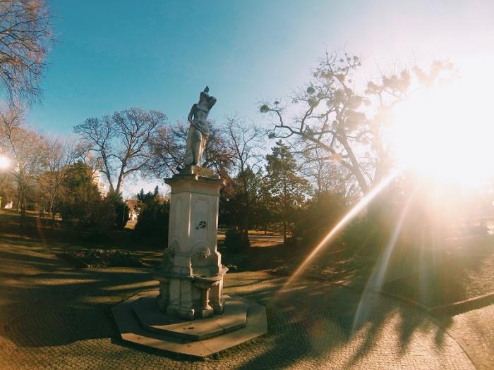 За несколько минут доехали на машине до станции Пратерштерн и там оставив машину пошли гулять по парку, время было между 8 и 9 часами утра, в парке было полно людей несмотря на выходной, кто гулял с собаками, кто бегал, кто гулял с детьми, город начинал оживать. Вышло отличное солнце, температура воздуха помню была около 12 градусов тепла.