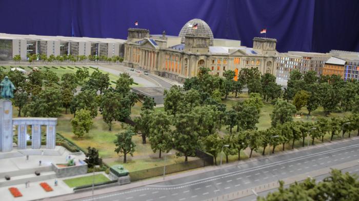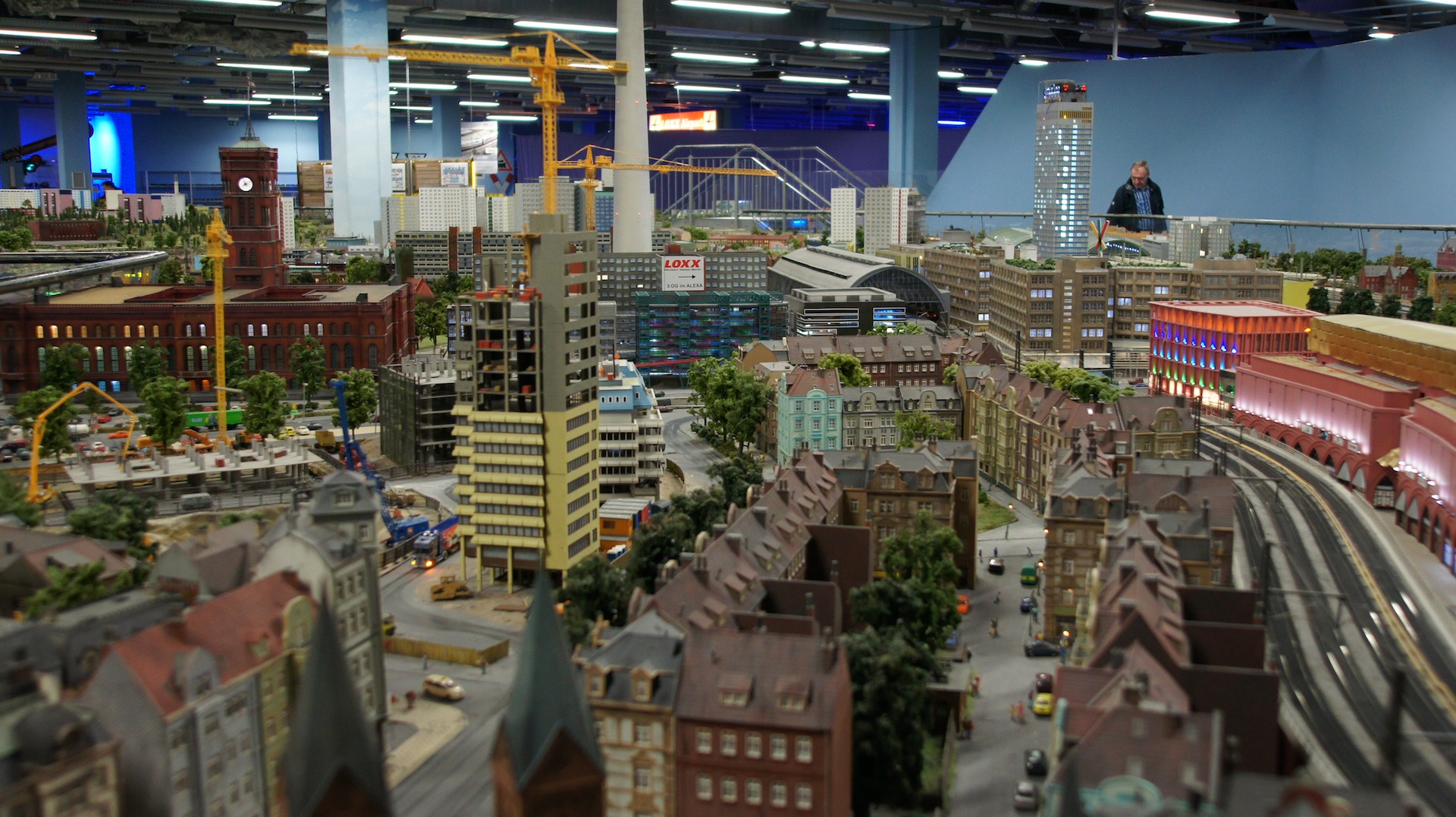 зашли в торговый центр Алекса посмотреть Берлин в миниатюре. Он выполнен с фантазией и с большим юмором, интересно было увидеть миниатюрные макеты тех мест, зданий и памятников, с которыми мы только сегодня познакомились, крошечные фигурки людей, занимающихся разными своими делами, проезжающие по железной дороге поезда, смена дня и ночи. Посетителей – почти никого, мы вдвоем бродили и рассматривали это рукотворное чудо.