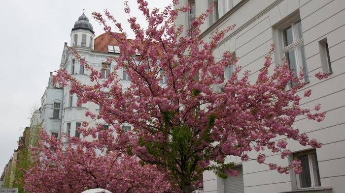 Заселившись и побросав вещи, отправились на прогулку на улицу Kurfurstendamm. В Берлине нам предстояло провести еще два полных дня, один из которых мы планировали посвятить пешеходной прогулке по городу и осмотру достопримечательностей, а другой (думаю, женская аудитория меня поймет) – шоппингу. Причем, так как вторым днем пребывания было 1 мая – национальный праздник в Германии, в который все магазины закрыты, — шоппинг был запланирован на завтра. А сегодня мы просто бесцельно бродили по городу, любовались цветущей сакурой, тюльпанами, фонтанчиками, которые попадались по дороге.