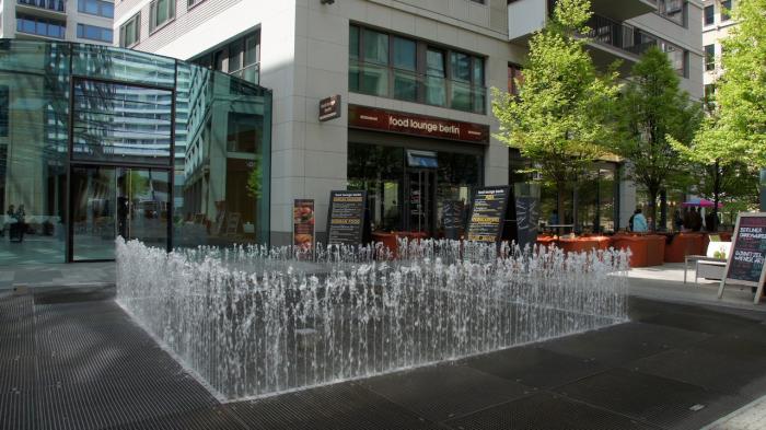 Струи воды то взмывали в небо, то почти полностью угасали. Группа довольных и почти полностью промокших детей с хохотом носилась по этому фонтану, пытаясь угадать движение струй.
