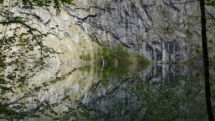 Проходим минут 10 пешком и нам открывается зеркальное озеро Оберзее. Гладь озера настолько чиста и неподвижна, что эффект зеркального отражения просто потрясает.