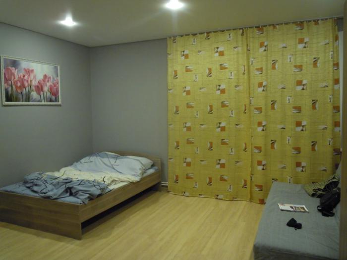 К 22.00 мы были в Костроме, где и сняли квартиру на ночь. Квартира была неплохая, поэтому сделали ее фото. Квартира — студия.