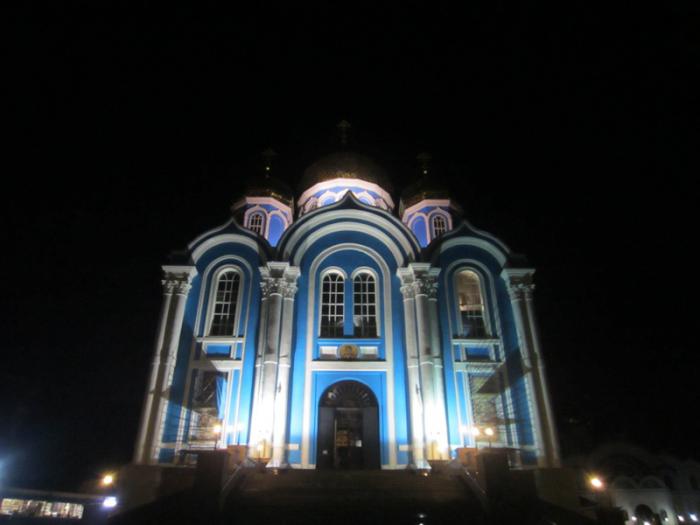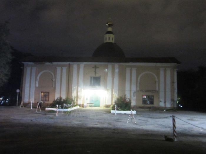 К 20.00 приехали в город Задонск Липецкой области. Вроде и не поздно было, но уже темнело, и, к сожалению, не все фотографии получились качественными. В центре города на центральной площади находится Успенская церковь, 1798-1800 годов постройки.
