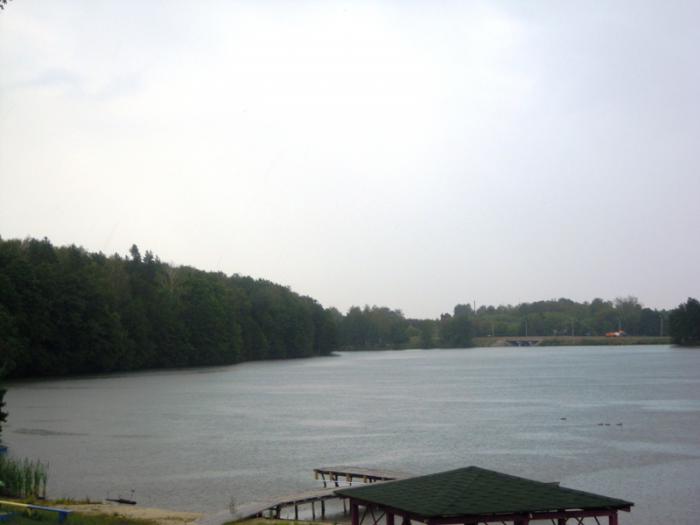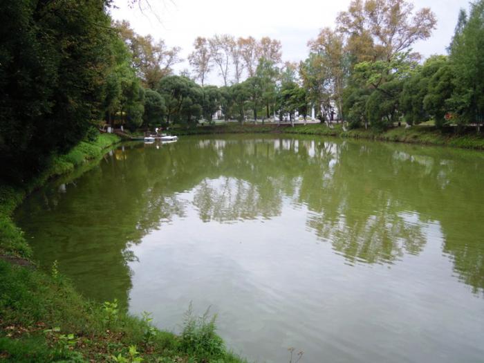 С другой стороны от дороги находится пруд.