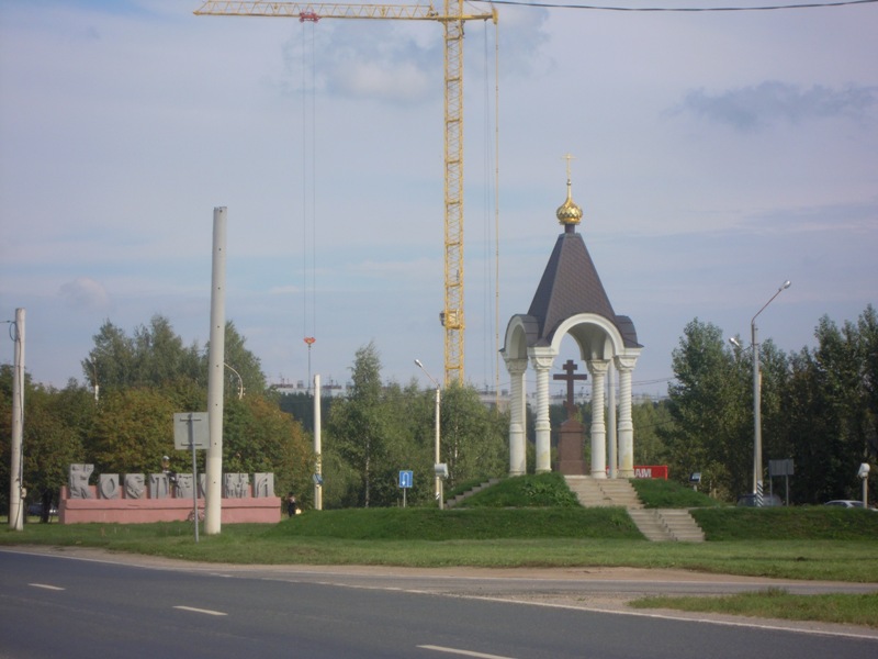 Часовня с поклонным крестом на въезде в город со стороны Ярославля.