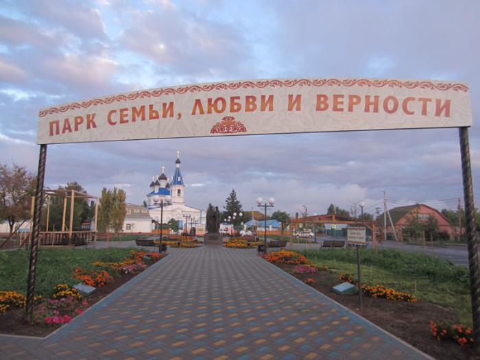 Парк разбит перед храмом. Конечно, «стоят Пётр и Феврония».