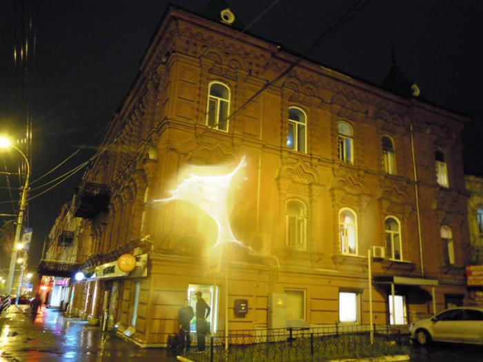 Городское граффити, рядом находится кинотеатр, поэтому «всё — в тему».