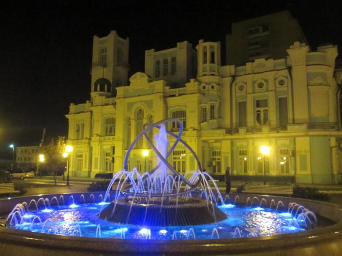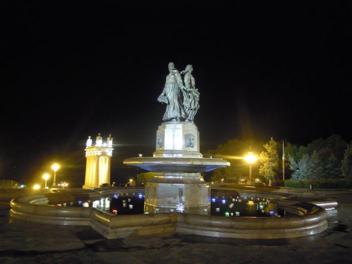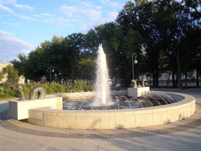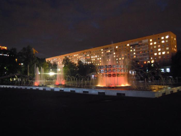 Фонтанная площадь, цветомузыкальный фонтан: и музыка играла, и разноцветные огни зажигались, и фонтан работал.