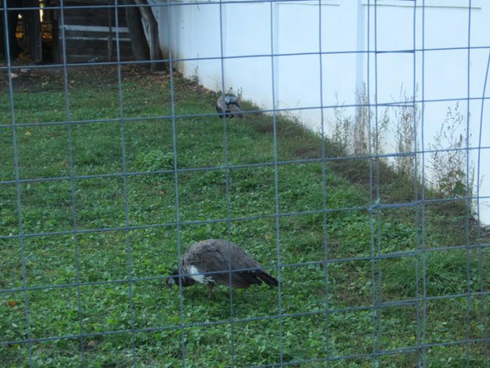 В клетке ходили павлины, один был с хвостом, правда не открывал его, второй — без хвоста, я имею в виду длинный красивый хвост.