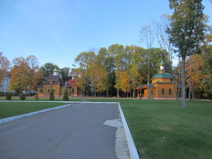 Слева подальше — Храм во имя Святителя Алексия, Митрополита Московского, построен в 90-х годах 19 века, с него и начинался монастырь, а по центру — Храм в честь иконы Божией Матери „Одигитрия“ Смоленская, новый, построен в 1995 — 2008 годах.