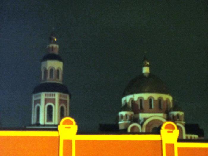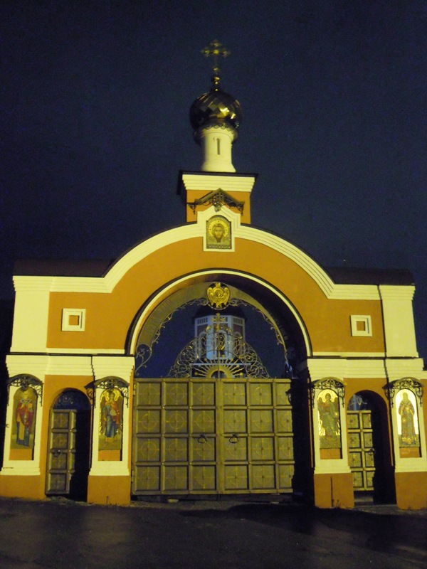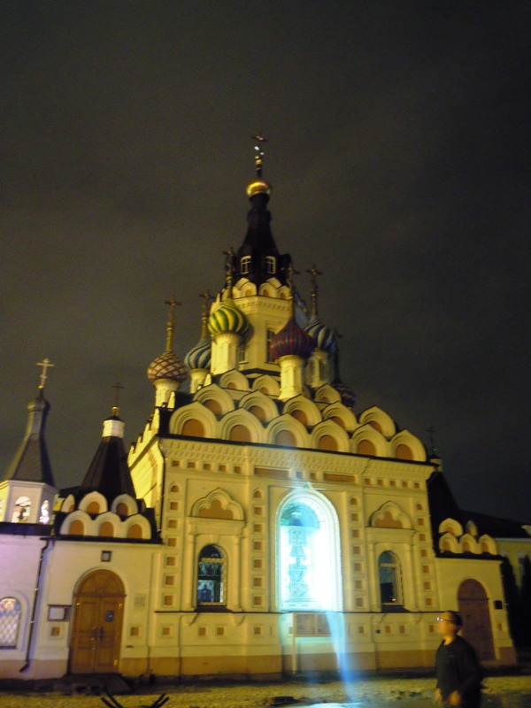 Приехали на Спасо-Преображенское подворье Николо-Угрешского Ставропигиального монастыря. Основная каменная церковь — трехпрестольная: главный престол — Преображения Господня, южный — в честь Иконы Божией Матери «Достойно есть», северный — в честь Святого Пророка Ильи. Церковь была построена в 1882 г., возрождается с 1945 года. Вечерняя служба уже прошла, и охранник на воротах сказал, что сейчас будут работать ночные рабочие, и не пустил даже на территорию.