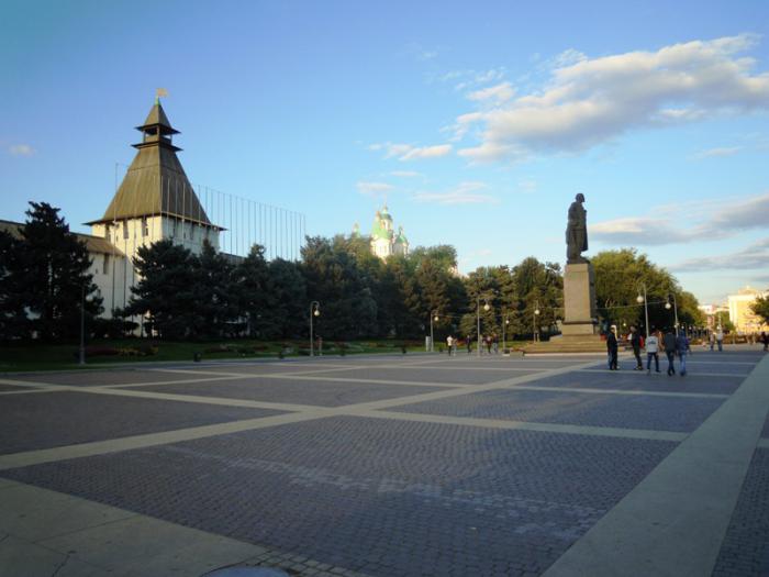 Вот так мирно стоит Ильич в Астрахани, а за спиной — Кремль.