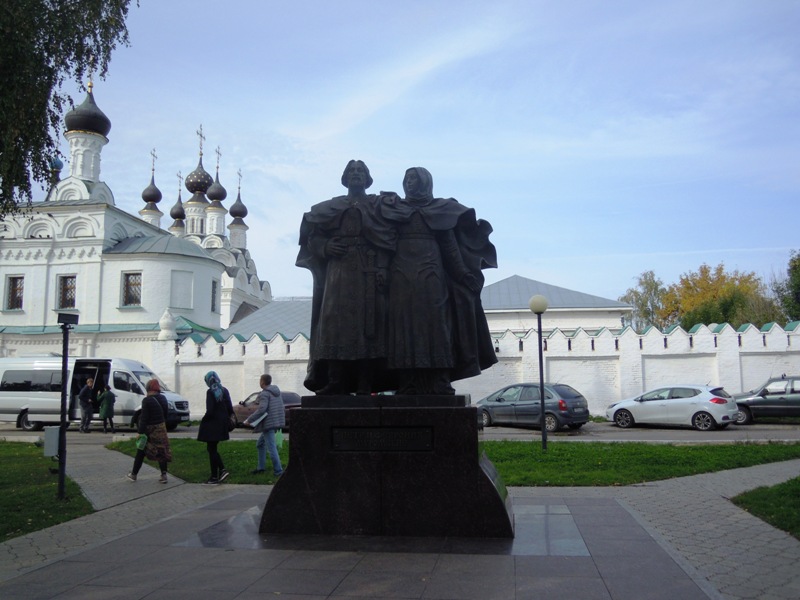 Практически «стена к стене» к Троицкому монастырю примыкает Благовещенский монастырь, а между ними на площади, конечно, Петр и Феврония.