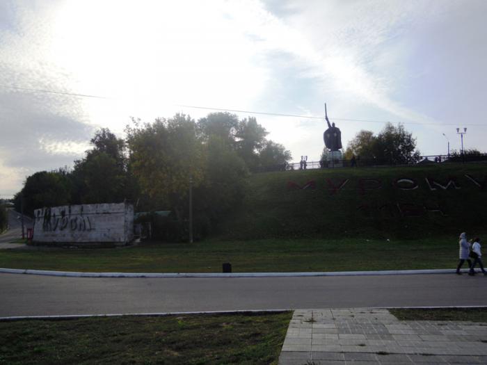 На горе — памятник Илье Муромцу.
