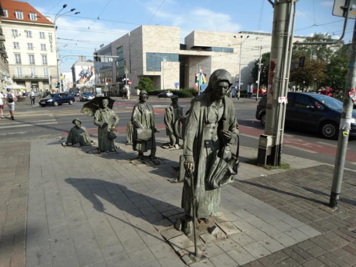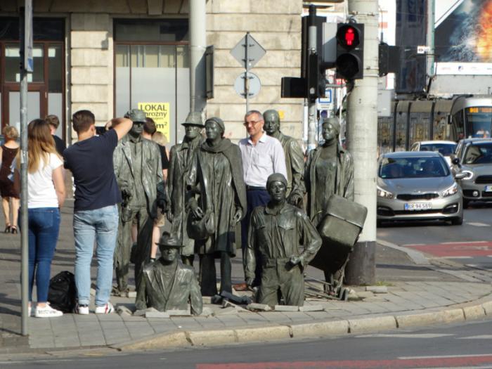 Неподалеку от наших апартаментов располагалась скульптурная группа «Переход 1977-2005». Композиция посвящена народным протестам 1981 года, когда в Польше наступил политический кризис. Она была создана скульптором Е. Калина. Группа состоит из нескольких фигур. Часть из них входит под землю и олицетворяет людей, пропавших без вести во время волнений, другая часть, наоборот, выходит из-под земли и символизирует победу над режимом. Композиция посвящена всем, кто пострадал во время репрессий.