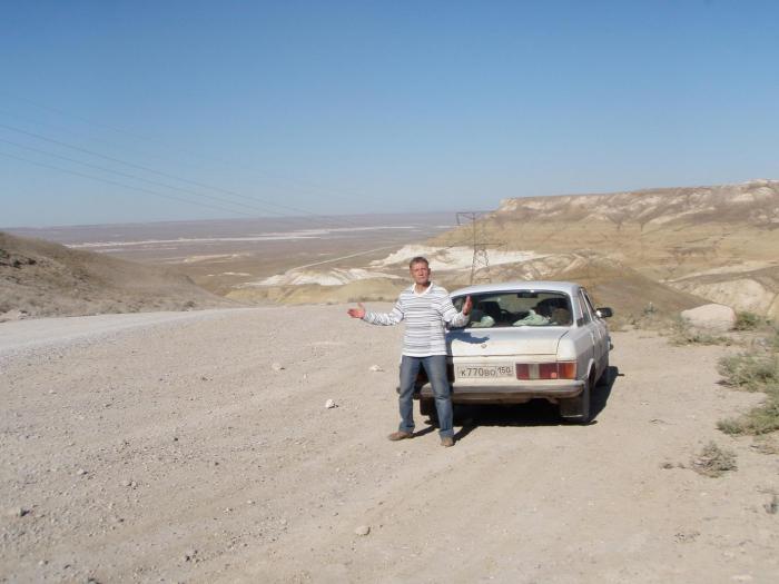 Смотрим цены на билеты на самолет: состояние близкое к прединфарктному – 70000 рублей на троих. Поезд даже не рассматриваем: душный вагон, в Актюбинске торчим целый день. Может на машине? Советуемся с одним товарищем, который, не напрягаясь, туда ездит чуть не каждый год (в прошлом году был). Отзывы самые лучшие: дорога отличная, на границе свободно, скорость движения около 120 км/час.; маршрут движения тоже разложен по полочкам. Решено! Едем! Быстро просматриваю машину, ликвидирую слабые места. Всё! Ночью мы уже хотим ехать в Актау.
