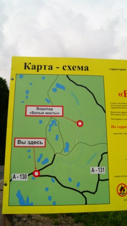 Далее мы поехали, поплутав по местным населенным пунктам и заехав на карьер, на водопад Белые Мосты. Спасибо водителю, который нас туда сопроводил. У нас с собой была туристическая карта Карелии от Руз Ко. На ней водопад находится совершенно в другом месте.