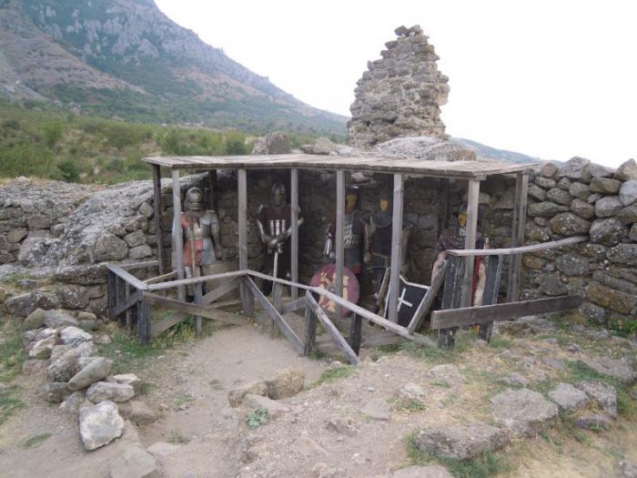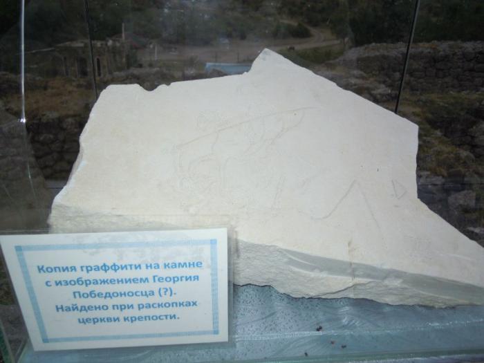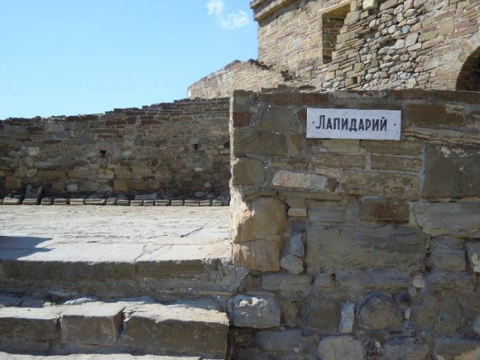 «Лапидарий» — это экспозиция образцов старинной письменности на каменных плитах. На многих сооружениях крепости археологами были обнаружены такие образцы письменности.