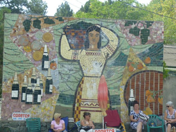 В этом посёлке располагается завод шампанских вин, основанный в 1878 году князем Л.С.Голицыным. Поэтому такая мозаика встречает приезжающих в посёлок, и тётеньки, сдающие жилье.