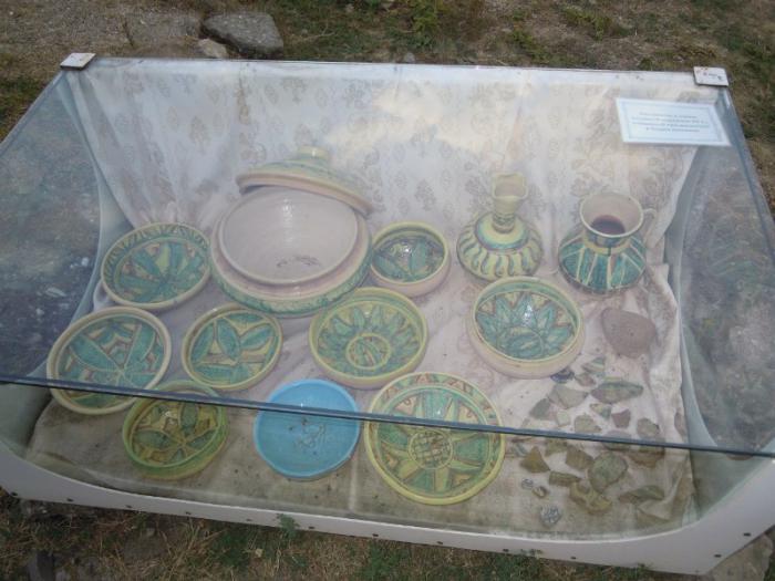 Фрагменты и копии поливной керамики 15 века, фрагменты найдены при раскопках.