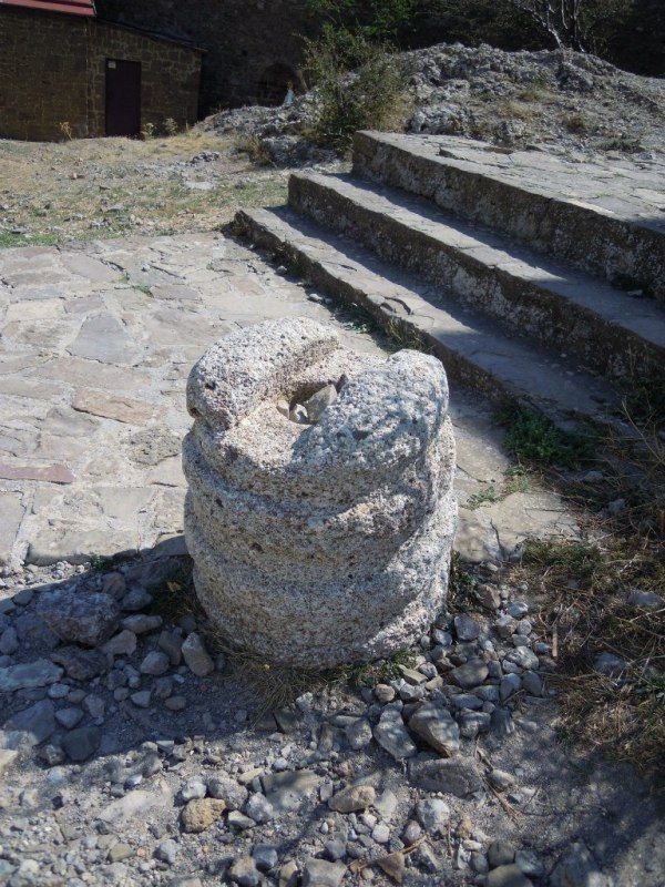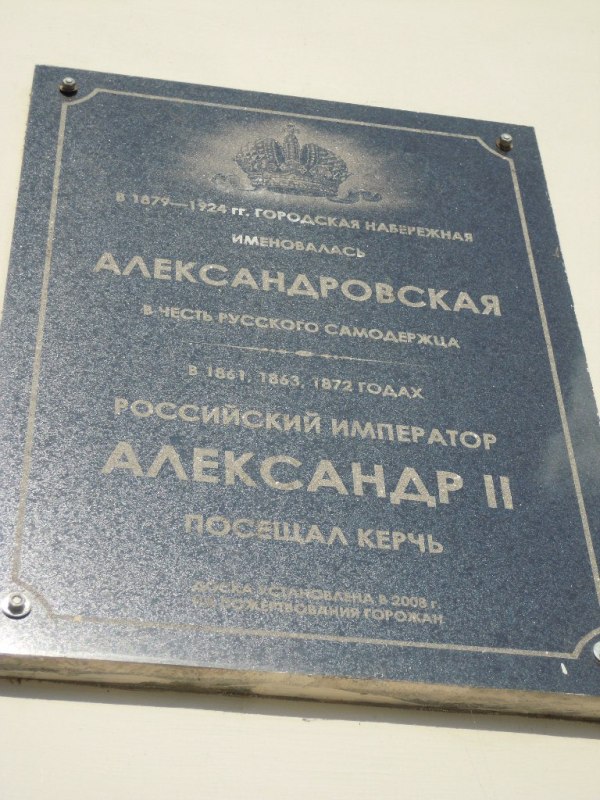 В начале подъёма стоит такая колонна с барельефом царя. К сожалению фото сделано против солнца, барельеф не виден, извините.