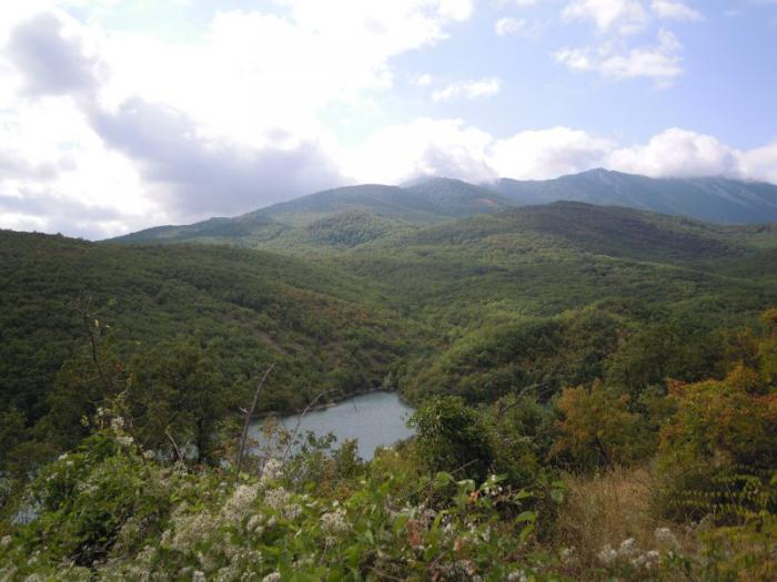 12.09.2015 г. Мы приехали в посёлок Зеленогорье, сам посёлок — внизу, а мы отправились в урочище Панагия к горному озеру и водопаду.