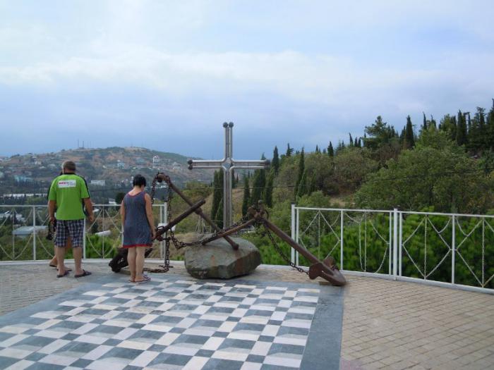 Площадку храма обрамляют старые якоря.