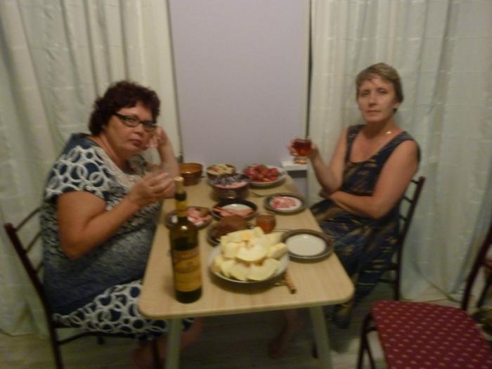 Закончили мы этот день праздничным ужином в квартирке. Пашенька как-то «мутненько» нас сфотографировал.