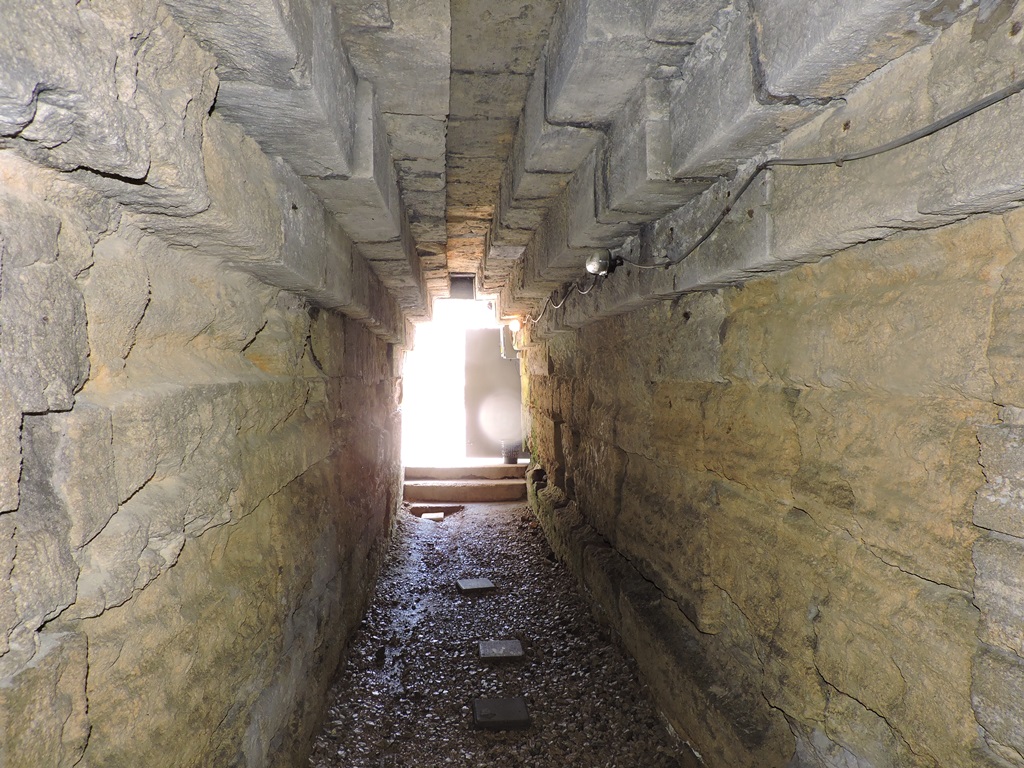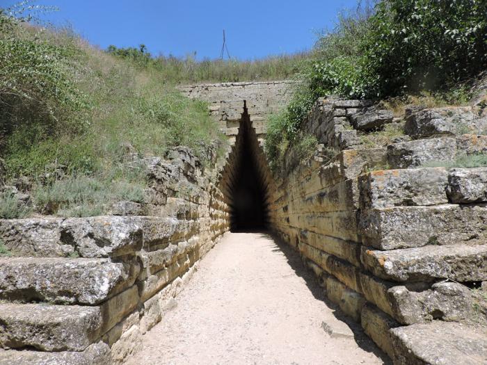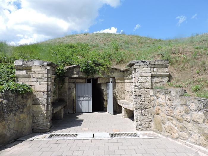 Далее посетили царский Курган, 4 века до нашей эры. Усыпальница одного из членов династии Спатрокидов, правивших Боспорским царством в 438–109 гг. до н.э. Внутри холма высотой 17 м находится 36-метровый коридор из каменных блоков и погребальная камера, которая напоминает пирамиду. Курган великолепен и огромен. Курган находится в поселке Аджимушкай. Недалеко от Керчи.