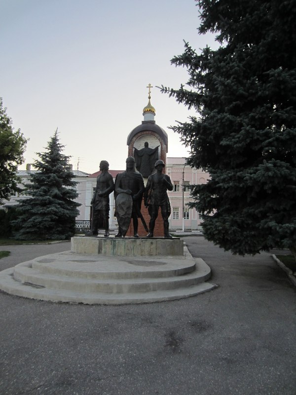 Приехали в центр города Елец. Недалеко от Красной площади установлен памятник елецкому пехотному полку, который принимал участие во многих сражениях, в том числе в русско-турецкой войне 1854-1878 годов и русско-японской войне 1904-1905 годов.