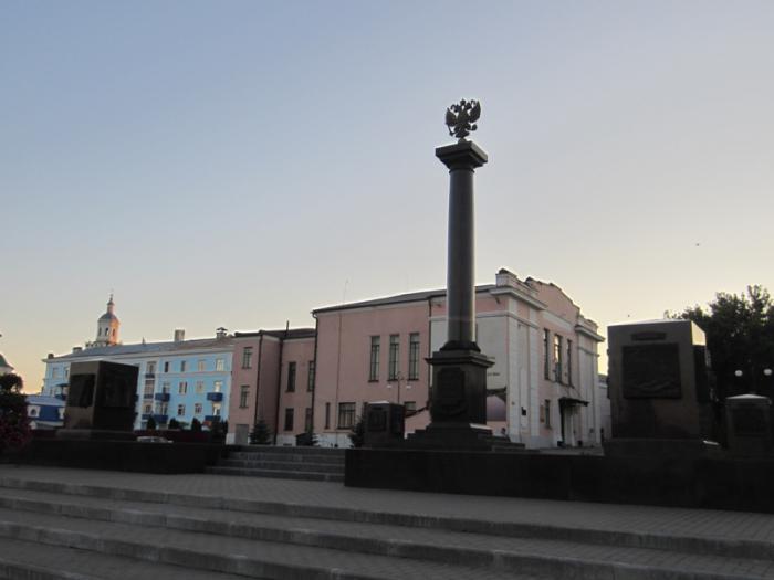 Красная площадь. Памятник установлен в честь 850-летия города в 1996 году, а часовня за ним была построена в 2010 году.