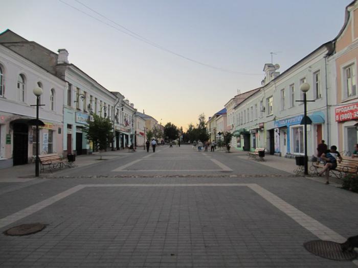 Пешеходная улица Ельца, на ней расположены старинные здания 19 — начала 20 века.