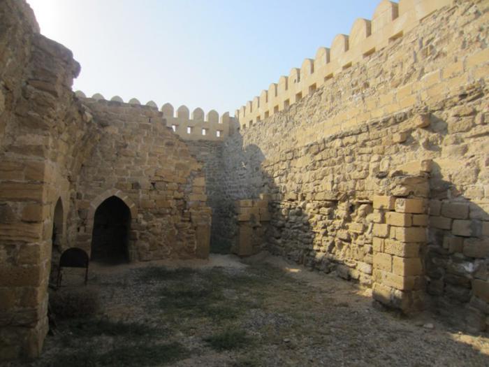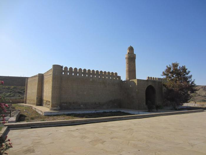 На самом деле крепость оказалась молельным комплексом, который включает в себя склеп, крепостные стены, остатки караван-сарая, мечеть-минарет, старое кладбище и гробницы. Комплекс создавался как «Молельня Пир Гусейна Ширвани» в 11-14 веках. Пир Гусейн Ширвани был выдающимся дипломатом 10-11 веков, теоретиком ислама, имамом. Об этом нам рассказала девушка-экскурсовод, которая встретила нас сразу у ворот. Она очень удивилась, что мы из России знали об этой крепости, место это пока абсолютно «нераскрученное». Туристов там практически не было, был небольшой автобус с местными номерами.