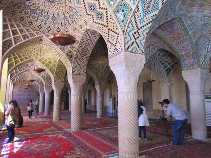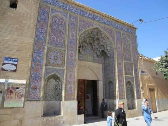 Мечеть «Насир-оль-Мольк». Строительство мечети длилось 12 лет с 1877 по 1889 год. Второе название – «Розовая мечеть» – здание обрело из-за того, что главным узором, украшающим как внутренние, так и внешние элементы храма, являются розы. Это несколько выбивается из общих канонов построения мечетей, поэтому мечеть «Насир-оль-Мольк» можно назвать единственной в своем роде – огромное количество роз в убранстве отчасти символизирует сам город Шираз, в котором выращивается более 300 видов роз.