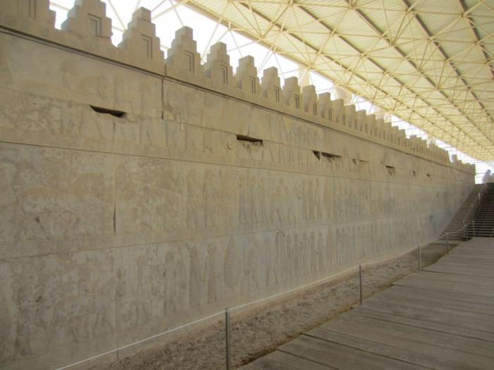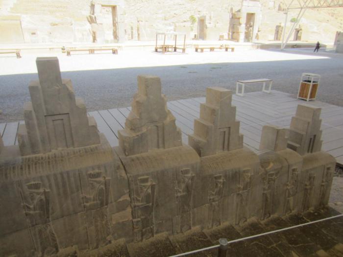 Торец северной лестницы «Трипилона», барельефы. «Трипилон» — главный парадный зал в Персеполе.