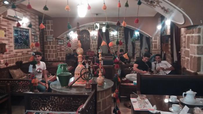 Передохнув немного в отеле, поехали поискать, где бы попить чаю со вкусненьким. Сами ничего не нашли, спросили у молодого человека на улице, он сел на мотоцикл, сказал следовать за ним и привез нас к «Кофе-шоп». Иранцы нам часто помогали подобным образом, не беря за это никаких денег.