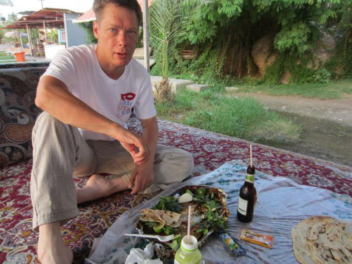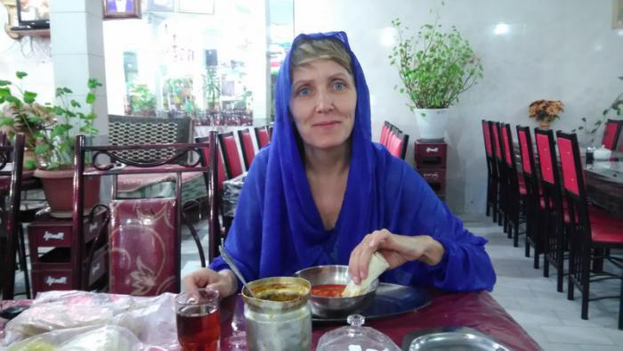 В придорожном кафе официант научил меня есть иранскую похлёбку. Рис уже изрядно поднадоел.