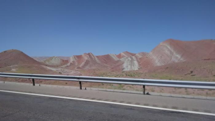 «Плюшевые» горы вдоль дороги, такие мы когда-то видели в Турции на территории, которая как раз недалеко от той области, где мы ехали по Ирану.