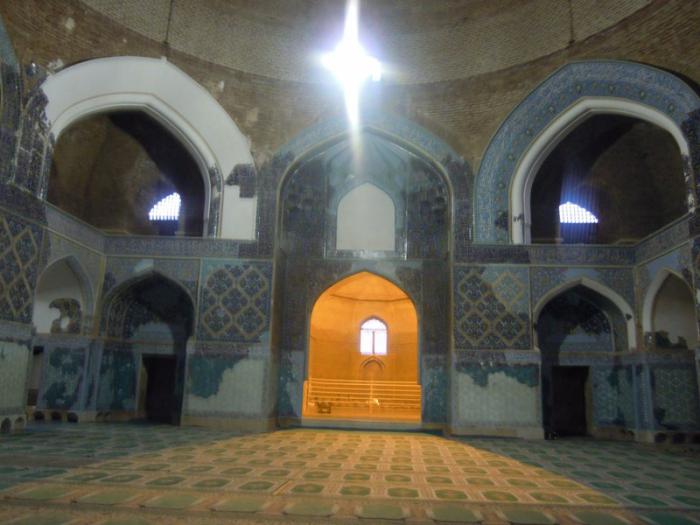 Мы приехали к «Голубой мечети». Мечеть «Кабуд» («Голубая мечеть») была построена в 870 году по приказу Шаха Джахана – правителя династии «Кара-коюнлу», который и сделал Тебриз столицей своего царства, в которое входили основные части современного Ирана, Азербайджана и Турции. Он был убит Узун Хасаном (правителем «Ак Коюнлу») и похоронен в гробнице в подвале мечети.