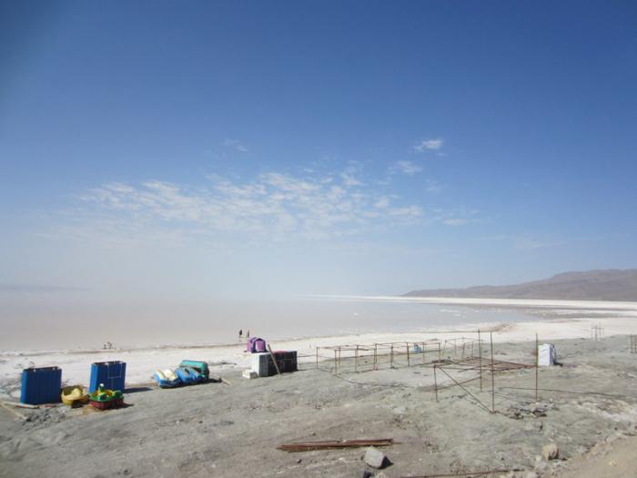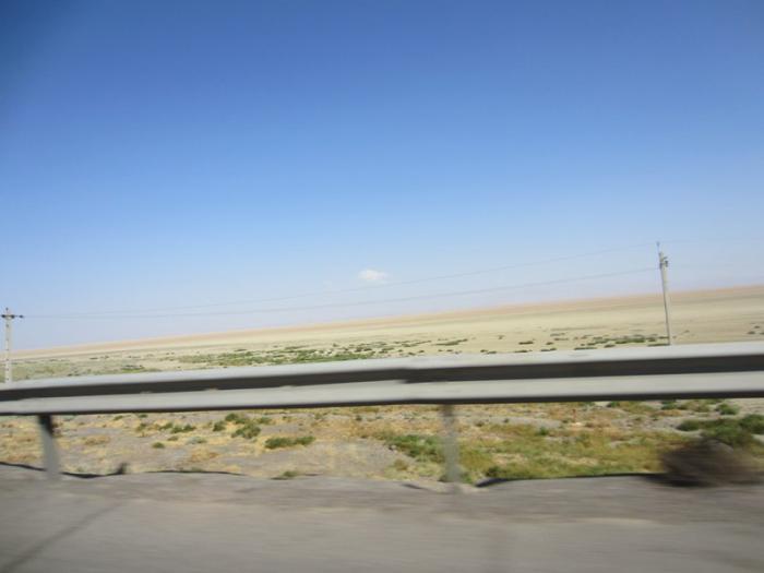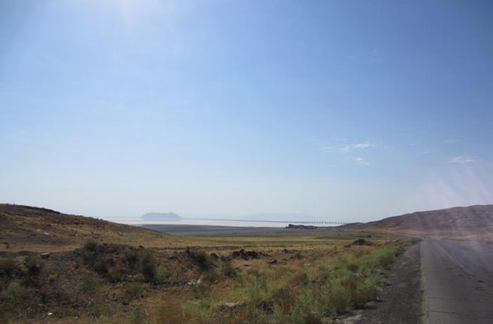 После прогулки по городу, мы отправились на озеро Урмия, которое находится в 100 км от города Тебриз. Озеро очень большое и через него тянется очень длинная дамба с мостом, мы проехались по дамбе до конца, развернулись и поехали обратно.