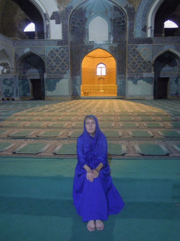 Район вокруг мечети весь обнесен строительным забором, строится какой-то большой торговый центр (как мы поняли), мы долго искали, как подъехать, мечеть видели, но подъехать, подойти к ней не могли, я уже хотела лезть через стройку (на каблуках), муж остановил, потом все же нашли подъезд, но припарковаться смогли только подальше. Когда шли от машины к мечети, встретили девушку — иранку, с которой мы поболтали на английском, она рассказала нам немного о городе, показала свои фото на своем телефоне, напоследок попросила Пашу нас с ней сфотографировать на её телефон. Мы пошли в мечеть, а девушка села в автобус. Наше общение с ней было похоже на общение девушек-приятельниц, было интересно.