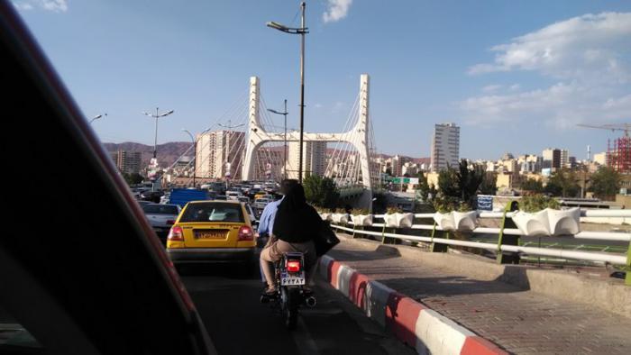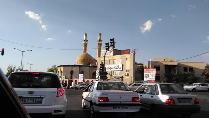 На фото представлено практически всё разнообразие машин в Иране: свои (справа), их большинство, старые «Пежо» (когда-то работал завод в Иране), китайские. Встречались еще немного «КИА» и «Хундай», дорогих иномарок почти не видели (один «Мерседес» и один «Ягуар»).